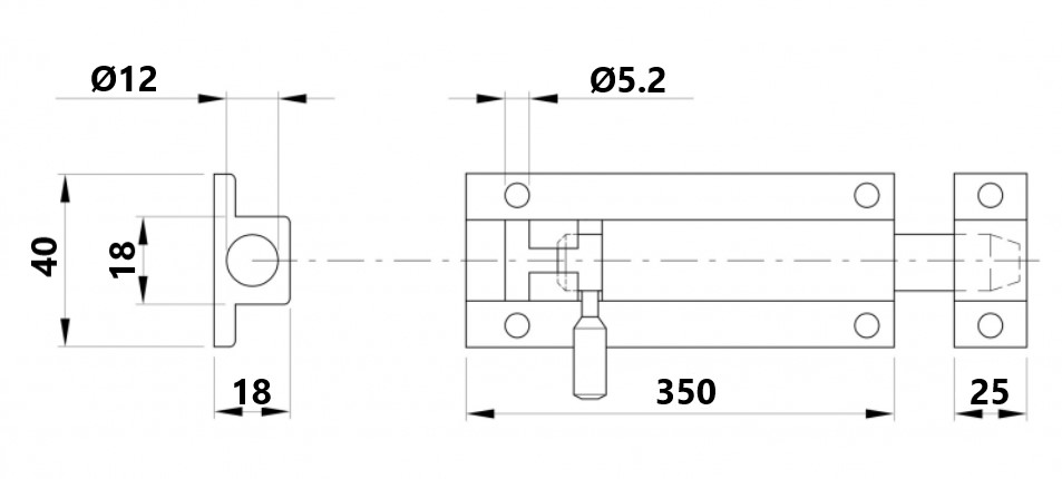 PASADOR CUADRADO ANCHO ALU. NEGRO 350mm