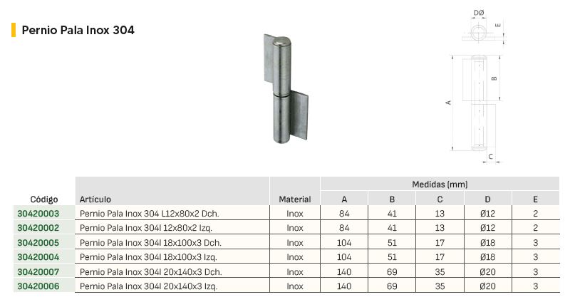 PERNIO PALA INOX 304L 20X140X3